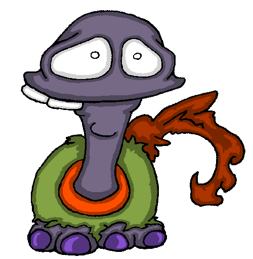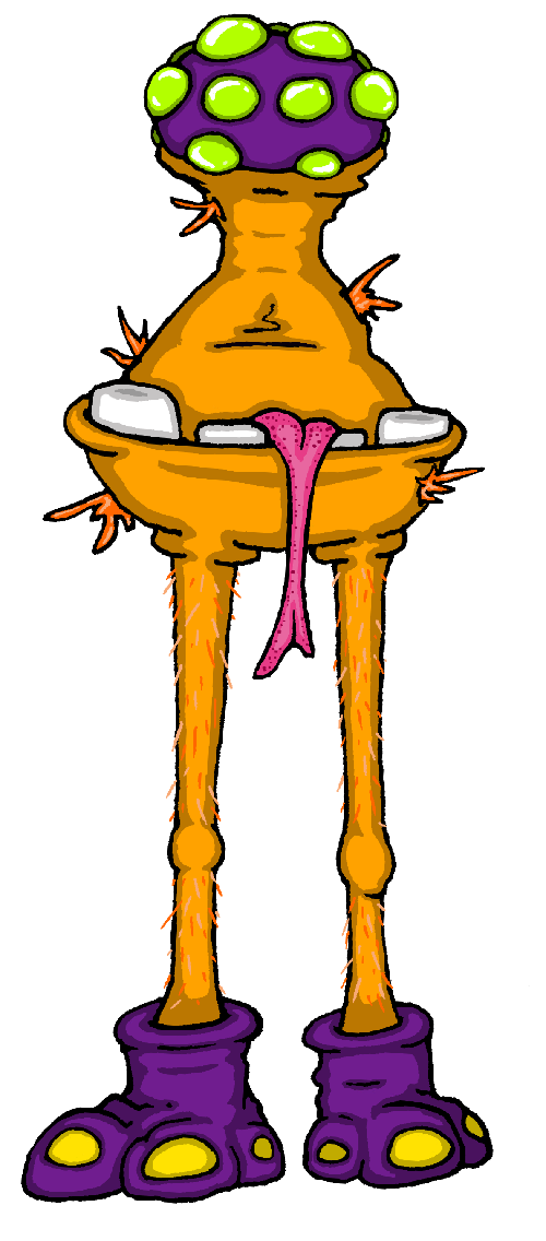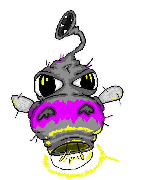 The Buggo: a clumsy, bumbly, bottom-heavy creature that features eyes which point in different directions and dwells in swamplike environments. At an average of 10 pounds and 2 feet tall, they are light for their size. Buggo will charge in the light and glow in the dark as a way to attract predators, which seems like a terrible idea - except that this is the only way for Buggo to reproduce. This is Buggo's chief desire. While being digested, Buggo transforms into a fungus that sustains itself on the digestive juices of their host. This process rapidly reproduces the Buggo spores, and thus the next generation of Buggo are born. To help ensure that the process is less likely to be interrupted, any creature that consumes a Buggo becomes more actively inclined toward its own death.