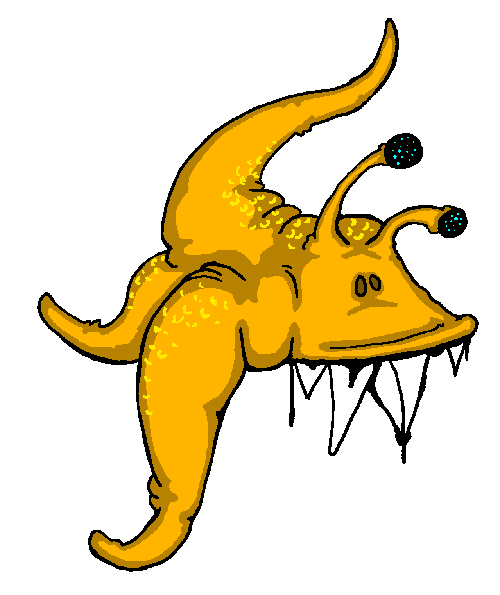 The feckish maw is named for the only part of itself that you can usually see. If you know what that is, you'll be on the lookout for it, and also be sufficiently offended if a desert-dweller politely tells you to "get fecked." Most of the time, its elephant-sized body remains sequestered deep in the sand. Only its wormlike mouth protrudes, waiting to for hapless prey to get just close enough. Its only sense organ is its skin, which picks up the subtlest vibrations. Immersed in the sand, it knows exactly when you get close enough, and as it pulls its mouth-stalk downward, you and the very sand you were standing on slide neatly into its - well, its feckish maw.